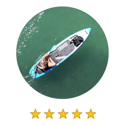 Mit Deinem SUP GLIDER gleitest du mühelos und stabil sitzend mit 4-5 km/h in guter SUP-Geschwindigkeit übers Wasser.